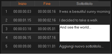 | Viene visualizzata la finestra di dialogo Editor sottotitoli. |