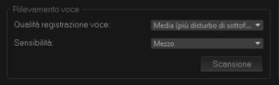 | 1 | Nell'area Rilevamento voce, selezionare le impostazioni negli elenchi a discesa Qualità registrazione vocale e Sensibilità che corrispondono alle caratteristiche della qualità audio nel video. |