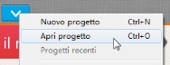 | • | In FastFlick, fare clic sulla freccia Menu > Apri progetto. |