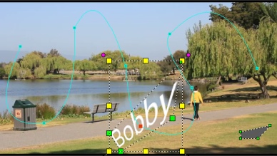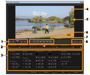 Utilizzando la funzione Personalizza movimento , è possibile combinare manualmente lo spostamento di sovrapposizioni e titoli con quello di elementi in un video di sfondo senza riferimenti ad alcuna informazione di tracciamento esistente. Questo significa che è possibile definire un proprio percorso di spostamento e modificare le diverse proprietà per creare effetti di animazione complessi.