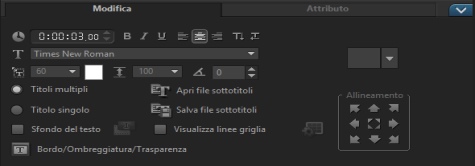 È possibile formattare il testo modificando il carattere, l'allineamento e la direzione del testo. Ad esempio, la direzione del testo può essere impostata da sinistra a destra, da destra a sinistra o verticale. Si possono anche aggiungere bordi e ombre oppure si può ruotare il testo. Aggiungere uno sfondo del testo per sovrapporre il testo a un colore uniforme o un a gradiente di colore per farlo risaltare. È anche possibile definire la lunghezza di un clip di titolo regolando la durata del clip di titolo.
