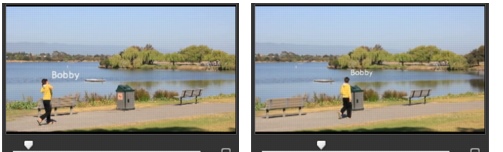 Utilizzando la funzione Combina movimento, è possibile combinare automaticamente il movimento di sovrapposizioni e titoli con un percorso delle tracce per creare l'effetto di un elemento che segue un altro. Ad esempio, è possibile identificare una persona in movimento in un video combinando un nome titolo al suo percorso delle tracce.