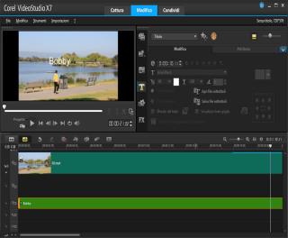 | 2 | Inserire un clip di titoli nella traccia sovrapposizione e regolare le sue proprietà in modo da corrispondere al progetto. |