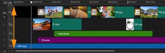Ad esempio, se si aggiunge un clip di 10 secondi all'inizio del video, tutti gli altri clip si spostano a destra di 10 secondi. In questo modo l'editing risulta più efficiente in quanto tutte le tracce restano sincronizzate.
