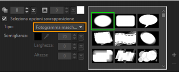 | 2 | Fare clic su Seleziona opzioni sovrapposizione, quindi scegliere Fotogramma maschera dall'elenco a discesa Tipo. |