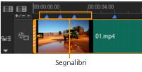 I segnalibri fungono da indicatori per aiutare a organizzare i clip multimediali in un progetto. Gli indicatori capitolo specificano i capitoli di menu disco o i collegamenti ipertestuali.