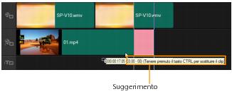 | 1 | Fare clic su un clip nella linea temporale per selezionarlo. |