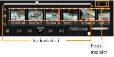 | 2 | Trascinare gli indicatori di ritaglio per impostare i punti Posiz. iniziale/Posiz. finale del clip. |