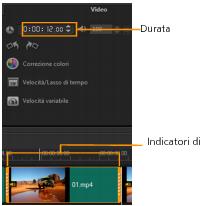 | Per ritagliare un clip mediante il riquadro Durata |
