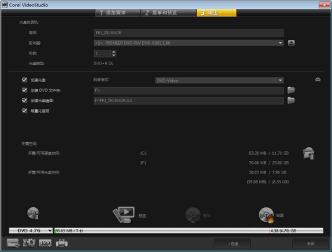 这是光盘创建过程的最后一个步骤。您可以将您的影片刻录到光盘、保存到硬盘上的文件夹或创建光盘镜像文件以便日后刻录。