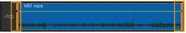 | 注意: 在时间轴上,选中的音频素材有两个拖柄,可用它们来进行修整。 |